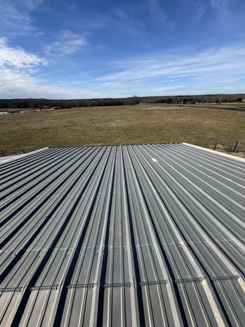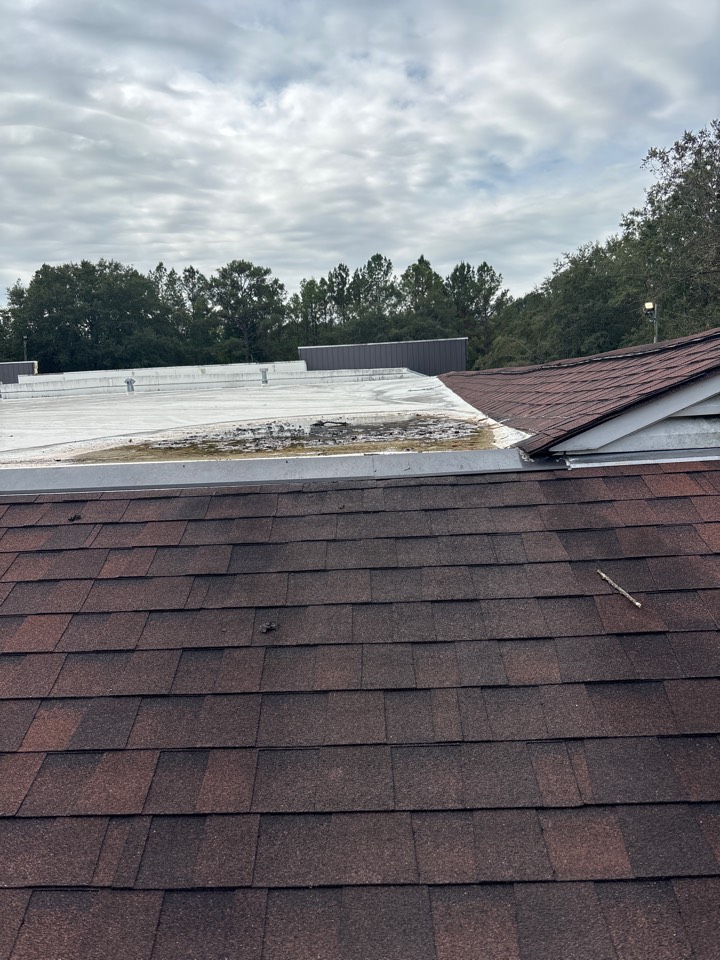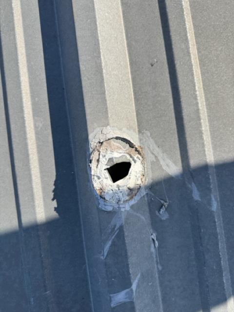 Repairing a poorly done repair job for a commercial customer. We are never surprised by shortcuts others sometimes take. A paint can cover was used to patch a hole in the roof.